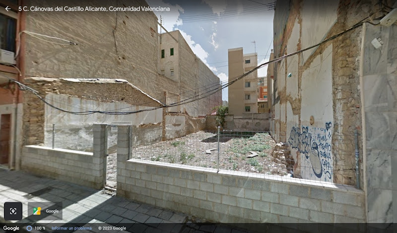 Foto del solar según Google. Se aprecia en las medianeras, la diferente distribución de las dos casas anteriores, una de planta baja y la otra con una planta más.
